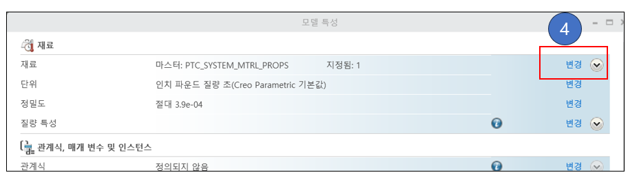 관계식 : MATERIA_NAME =material_param("PTC_MATERIAL_DESCRIPTION")