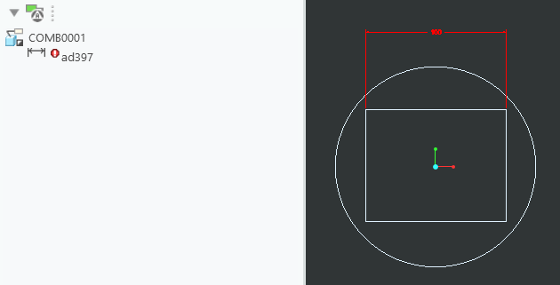 Feature를 덮어 쓰기한 경우 입니다. 사각형 형상의 가로 Dimension을 만들고, 원형 형상으로 덮어쓰기한 경우 입니다.