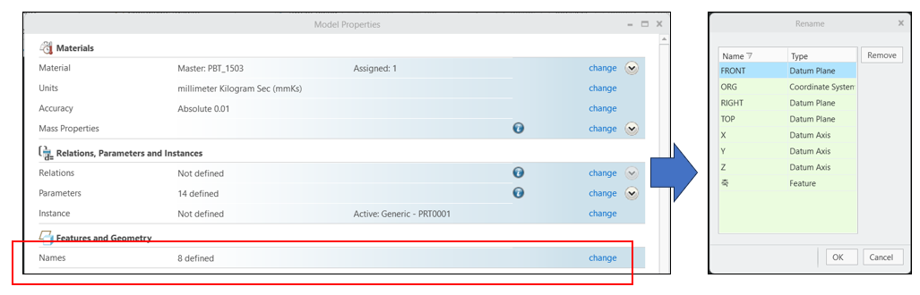 서피스 이름은 Model Properties > Name 명령을 통해 이름을 지정 할수 있습니다.▷ 코드