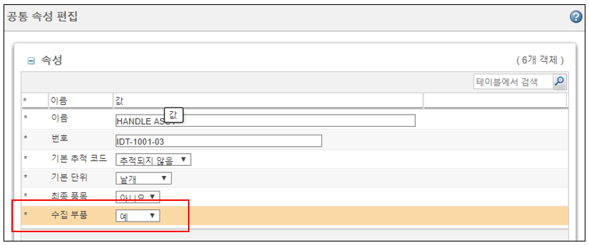 2. WTPart 수집 부품 선택 (공통 속성 편집 기능 사용)
