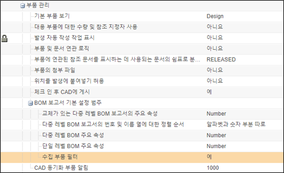 - Windchill 관리자는 Gathering part 기능 사용 여부를 제어할 수 있습니다.