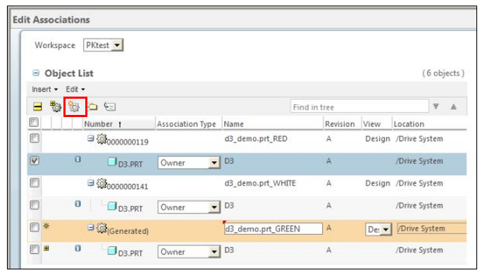 2) Windchill에서 현재 자동 연결을 사용하여 첫 번째 '대체' (소유자 연결 구조)를 빌드합니다.