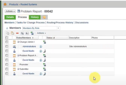 변경 관리자 I은 이메일 공지를 받고 내 임무 테이블에 문제 보고서를 분석하는 임무를 수락합니다. 임무 링크를 클릭하면 임무 정보가 표시됩니다. 임무 페이지에는 문제 보고서 정보 페이지 링크가 있으며 해당 페이지에는 세부내용, 프로세스 및 기록 탭이 포함되어 있습니다. 자세한 내용은 문제 보고서 정보 페이지를 참조하십시오.