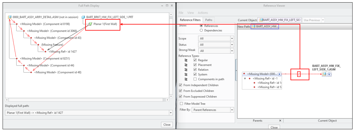 config.pro 파일을 수정 후, Creo를 실행하고 문제가 발생한 파일을 Open합니다. 두개의 모델 사이의 참조 관계를 제한적으로 정리 할수 있습니다. Creo에서 모델의 가상 종속성을 기본적으로 숨기도록 설정합니다. 가상 종속성은 모델 설계 과정에서 생성되는 임시적인 종속성으로, 실제 모델 작동에는 영향을 미치지 않습니다. 이러한 가상 종속성을 숨기면 모델 보기가 더욱 명확하고 간결해집니다.