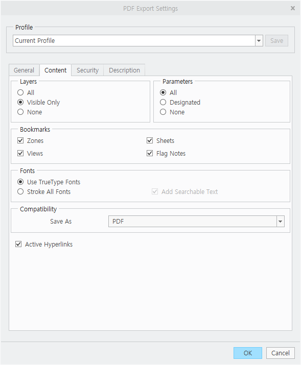 도면에서 PDF 변환 옵션은 다음과 같습니다.