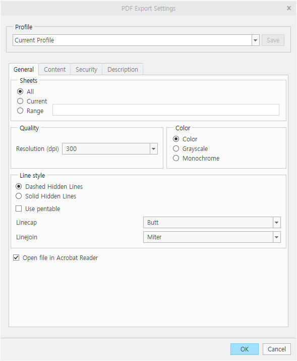 pdf 로 변환 하는 Drw Sheet를 선택 합니다. "All"을 선택