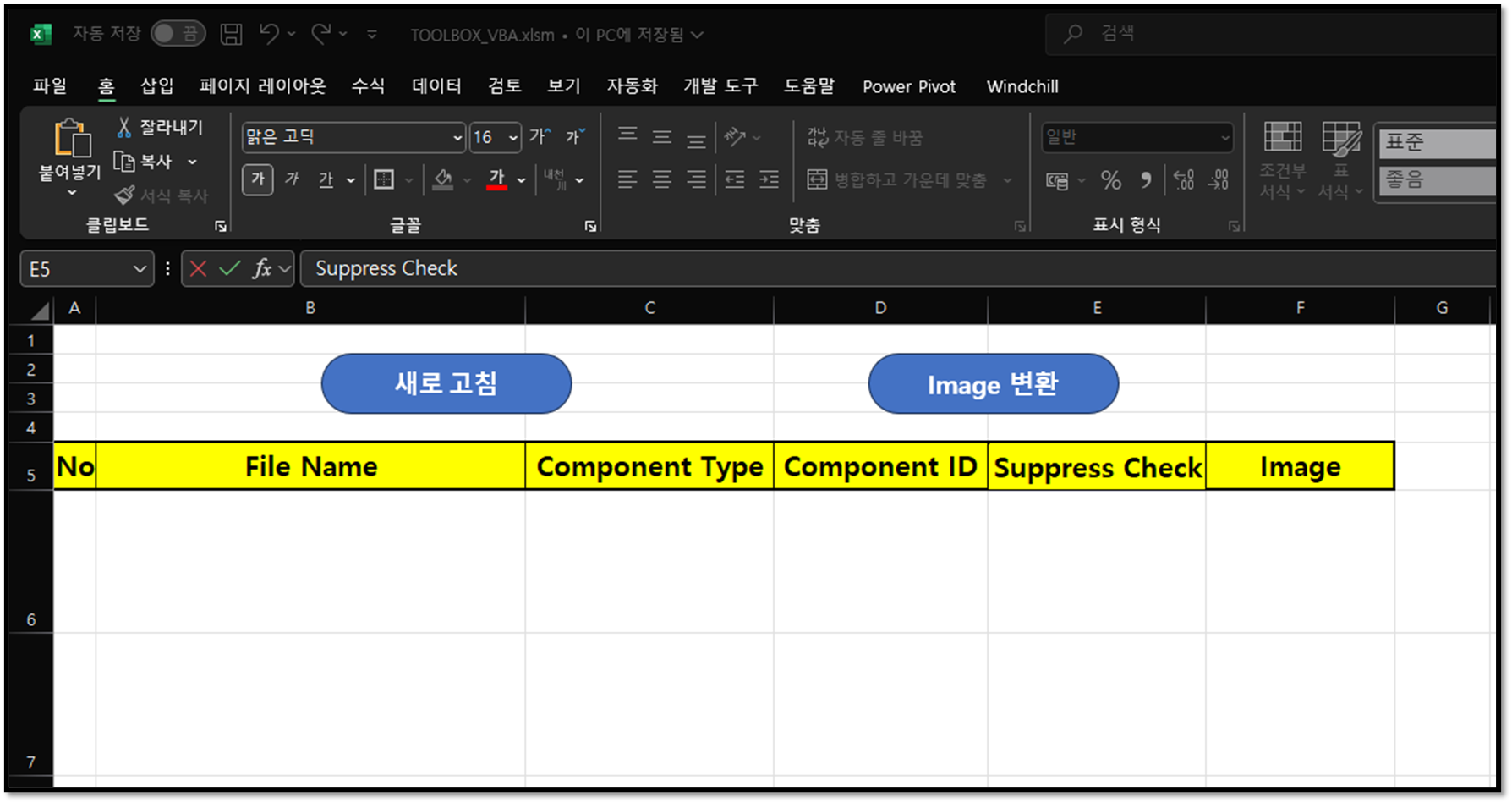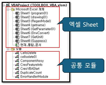 엑셀 sheet 마다 프로그램을 만듭니다. 공통 모듈은 재사용 합니다.