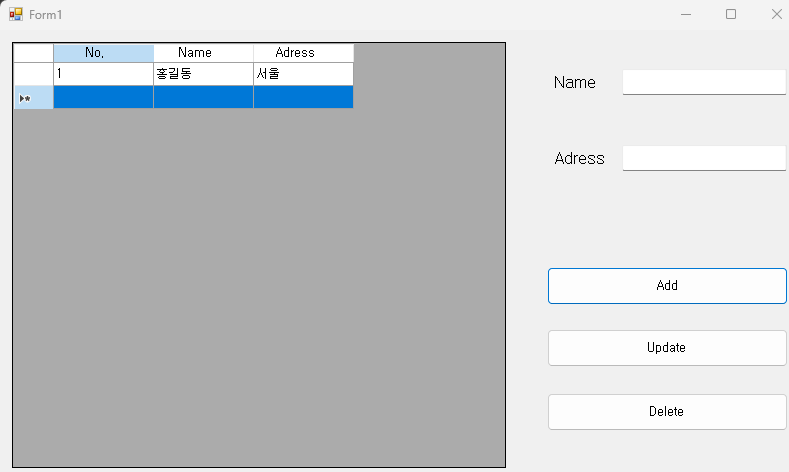 - Add 버튼 : Name, Adress를 입력후 클릭 합니다.