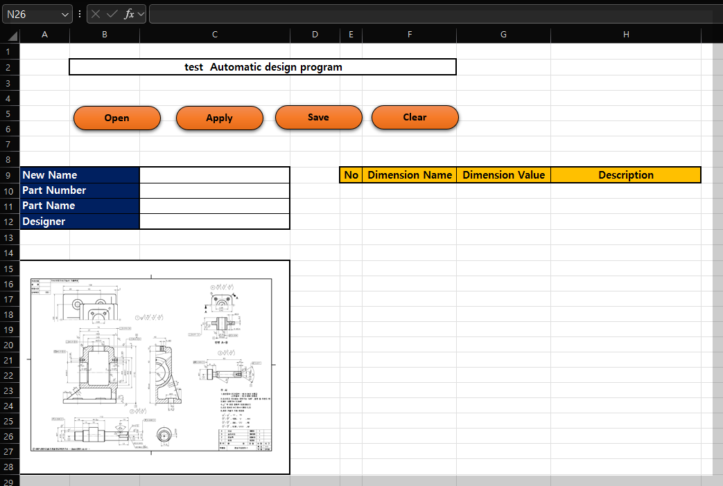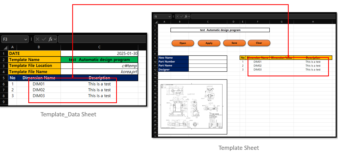 - Import Creo Dimension names and values defined in Template_Data Sheet into Excel.