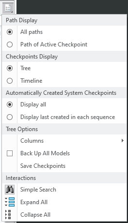- 각 시퀀스에서 마지막으로 생성된 항목 표시(Display last created in each sequence) - 각 브랜치에서 자동으로 생성된 마지막 체크포인트만 표시합니다.