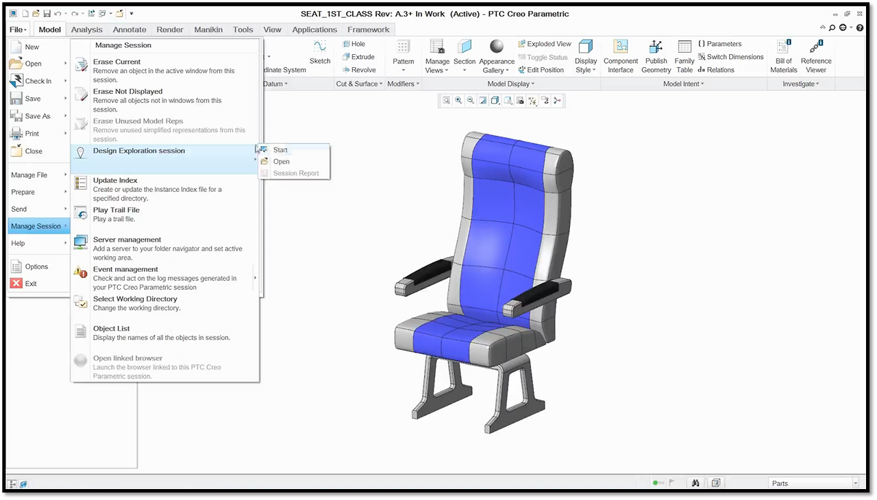 1. 어디에 메뉴가 있을까요? File>Manage Session > Design Exploration Extension > Start를 클릭, 버전 관리를 시작.