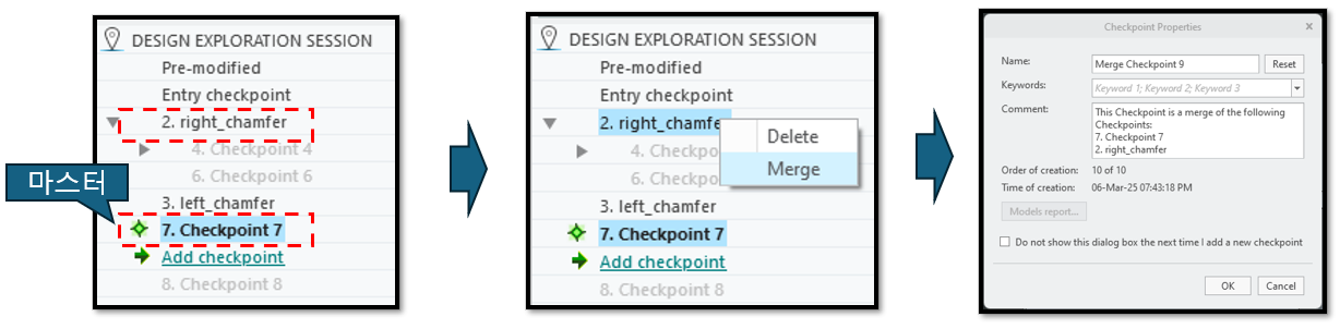 서로 다른 설계 변경 사항을 통합하는 데 사용됩니다. Merge 기능은 제한적으로 적용 됩니다.