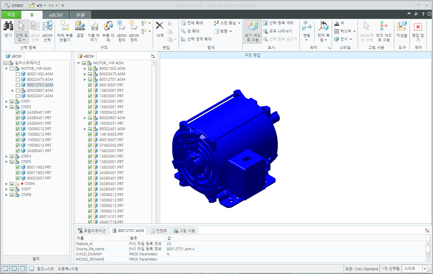 eBOM 부품 데이터를 사용하여 서비스 BOM (sBOM)을 생성하여 부품 목록 및 서비스 절차에 대한 정보 구조를 생성합니다. 순차적인 조립 및 분해를 그림으로 또는 동영상으로 작업자에게 내용을 전달 할수 있습니다.
