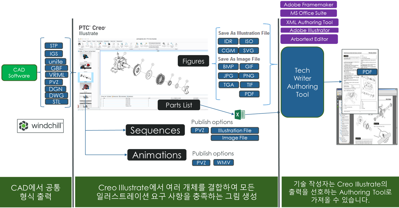 Creo Illustrate 기능을 이용하여, MS-워드 또는 WEB으로 특정 형식의 작업 지시서를 만들 수 있을까요? 특정 형식은 분해뷰 + 품번과 수량이 포함된 테이블 형태 입니다. Creo Illustrate 프로그램에 직접