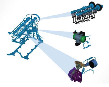- 부품, 뼈대 모델, 어셈블리 등 다양한 모델 유형 간에 형상 참조 정보와 사용자 정의 매개 변수를 전달할 수 있습니다.