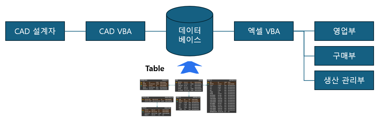 모델로 부터 다양한 정보를 API 프로그램 활용하여 데이터 베이스에 저장 가능 합니다. 저장된 데이터를 엑셀 파일로 가져올수 있습니다. 이것을 활용하여 영업부, 구매부, 생산 관리부서에서 필요한 데이터를 가져올수 있습니다.