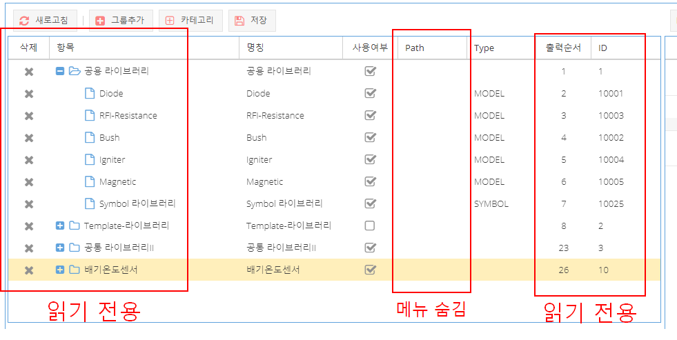 * 관리자 프로그램에서 CREO Parameter 값을 저장 하는 기능이 필요. 라이브러리의 속성은 내용 변경이 수시로 발생