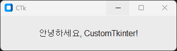 label = ctk.CTkLabel(master=root, text="안녕하세요, CustomTkinter!", font=("Arial", 16))
