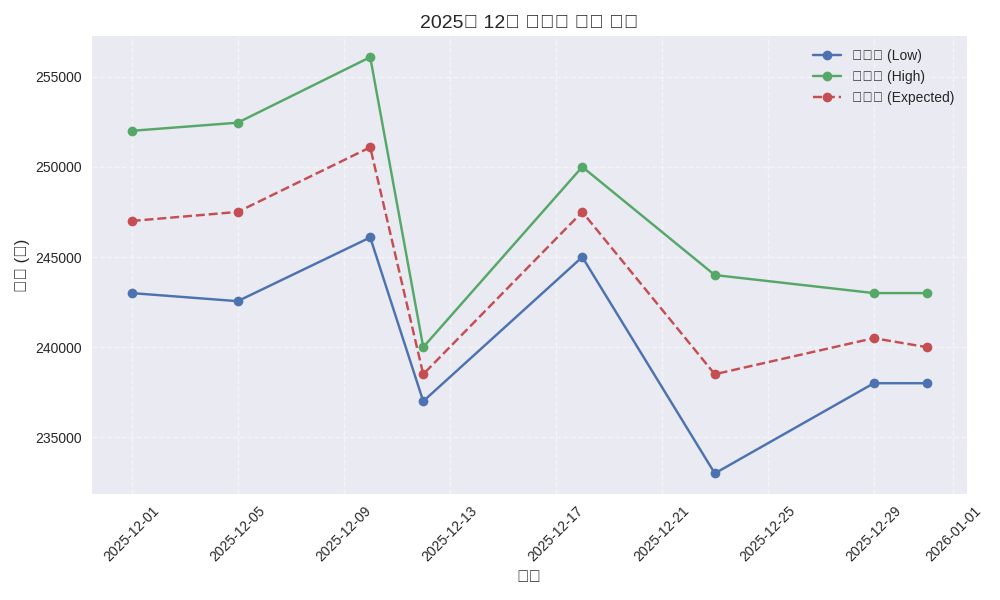 - 12월 23~26일: 변동성 확대, 23만 3천~24만 4천 원대까지 하락.
