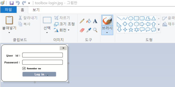 2. WINDOW 그림판으로 이미지를 파일로 부터 삽입을 클릭하고, 이미지 파일을 선택 합니다