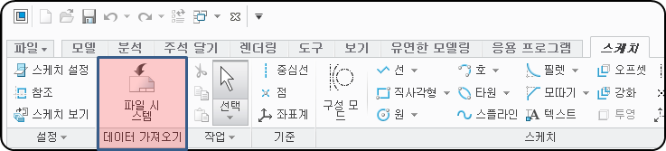 DXF 파일로 저장된 MARK 또는 심볼을 CREO에서 다시 그리지 않고 받아들이는 방법 입니다. 파일 시스템 데이터 가져오기 기능을 사용 합니다.