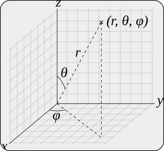 3. 구형(Spherical) - 반지름, 파이 및 세타 좌표를 사용하여 참조된 좌표계를 기준으로 위치를 설정합니다.