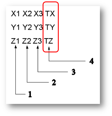 1. X축 방향은 행렬 파일에서 결정된 다음 새 좌표계 원점으로 변환됩니다. 2. XY 평면은 파일의 두 번째 벡터에서 구성되어 새 좌표계 원점으로 변환됩니다. 3. Z축은 오른손 법칙에 따라 자동으로 구성됩니다. |