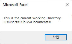 3. VBA 프로그램을 실행 하면, 현재의 작업공간을 체크하는 메세지 박스를 표시합니다.