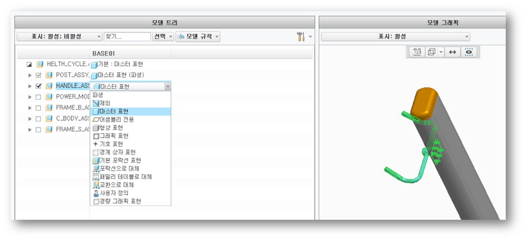 handle 어셈블 파일의 단순화 표현을 마스터로 변경 - 모델에 표시 됩니다.