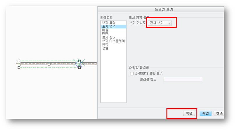 파단뷰를 위치를 수정 하려면 전체 보기로 변경 한후, 다시 파단뷰를 선택 합니다.