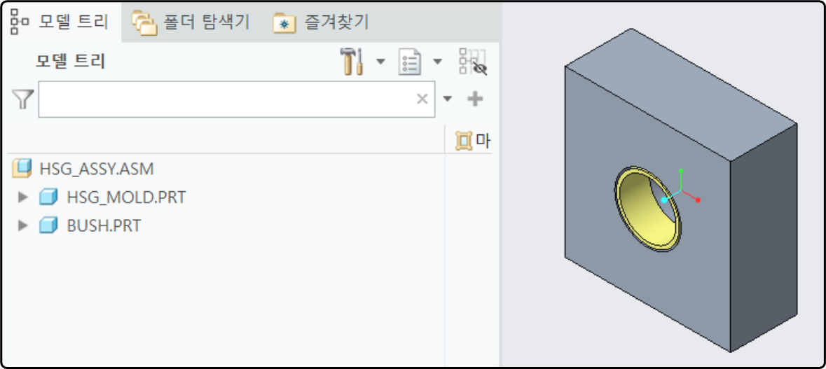 인서트 부품이 포함된 몰드 부품을 BOM으로 표시 하려면, 하우징 부품을 제외 하여, BOM에 표시 하는 경우가 있습니다. 이런 경우 단순화 표현을 만들고 E-BOM에서 단순화 표현으로 만든 모델 구성을 표시 합니다.