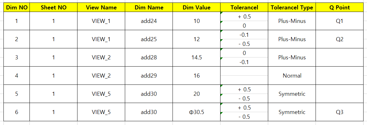 삭제되고, Table에서도 삭제 돠며 "자동 정렬"이 되어, 도면의 Q Point 넘버링과 Table이 자동 정렬