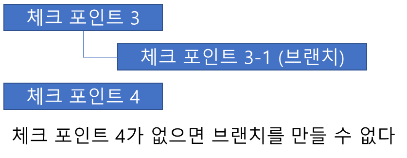 체크포인트를 추가할 때 활성 체크포인트에 하나 이상의 후속 체크포인트가 있는 경우 체크포인트 트리에서 새 브랜치가 생성됩니다.