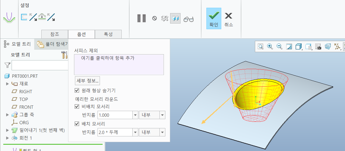 서피스를 이용하여 펀치 형상 만들기, 펀치, 다이 라우드가 포한됨 UDF를 만들수 있습니다. 한 가지 아쉬운점은 가변