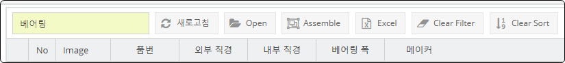 - 스트링 검색 : 입려한 숫자 또는 스트링이 포함된 문자열 검색. 예를 들어 "435"로 시작하는 품번 검색