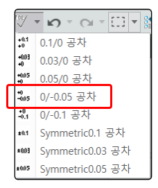 아이콘을 만들어 사용 합니다. 아이콘 이미지는 Window 그림판에서 만들고, 만들어진 이미지를 선택 하면 자동으로 ICON이 생성됩니다. 도면에서 치수를 선택하고 해당하는 공차 아이콘을 선택하면 자동으로 공차 값이 표시 됩니다.