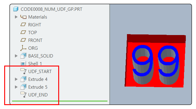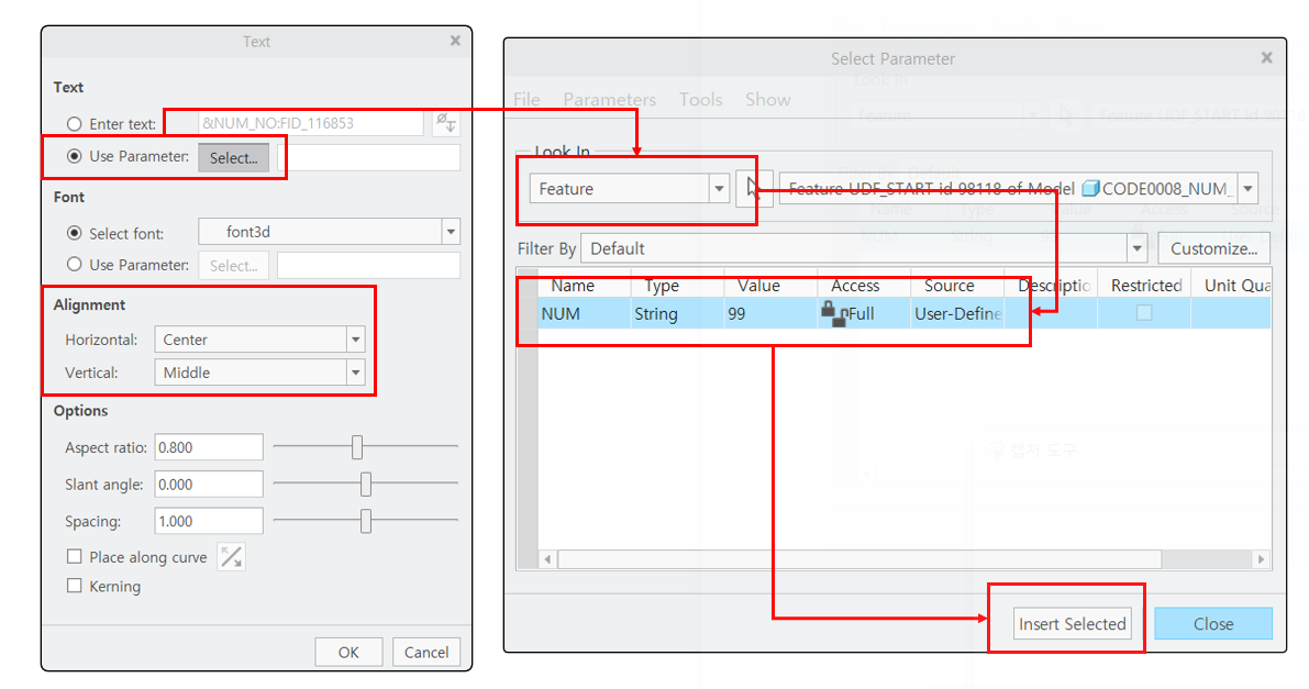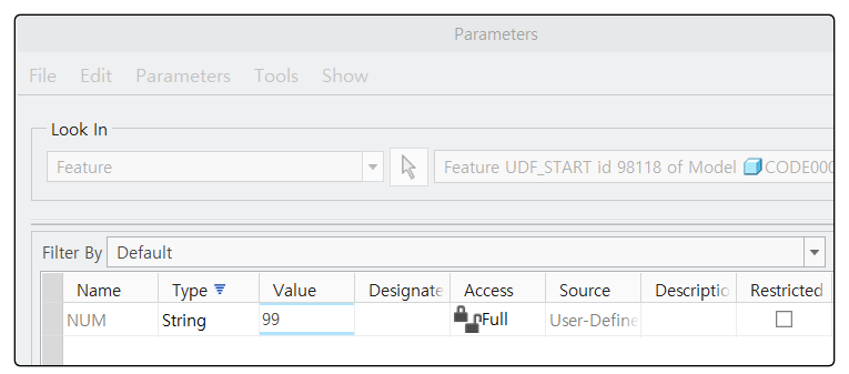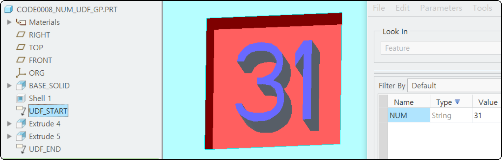 삽입된 UDF는 Feature의 값을 변경 할수 있습니다. 또한 교체도 가능 합니다. 삽입된 UDF의 치수 값은 ToolBOX 프로그램에서 자동으로 가져오기가 가능 합니다. 반대로 치수 값을 ToolBOX 프로그램으로 변경 할수 있습니다.