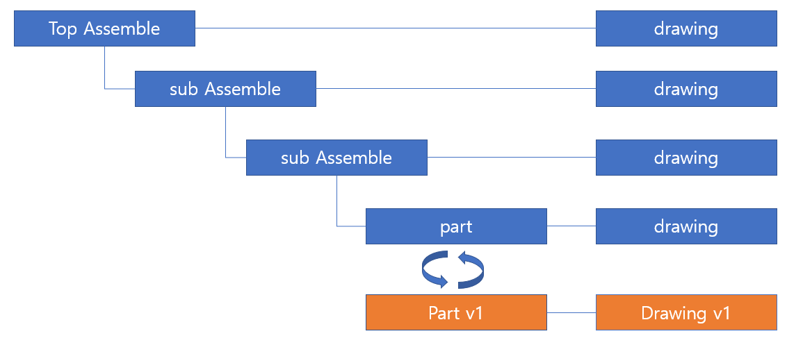 - 어셈블 파일 안에있는 part 파일과 part의 drawing 파일을 save as 하고,교체 하는 명령 입니다.