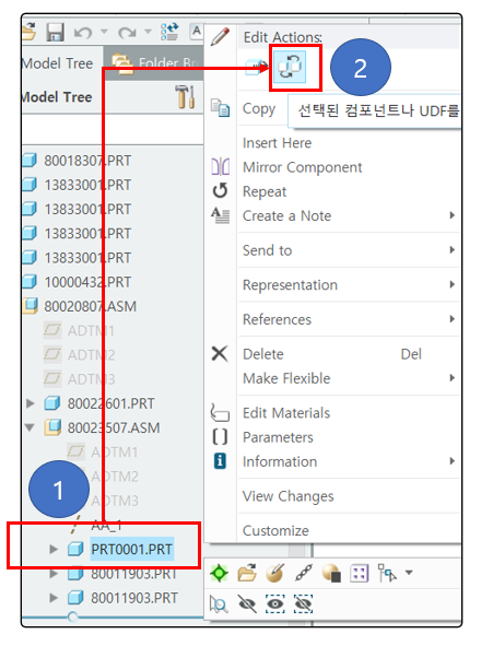 - 모델 Tree에서 파일을 선택 후, 마우스 오른쪽 버튼을 클릭합니다. 교체 아이콘을 선택 합니다.