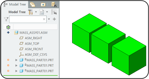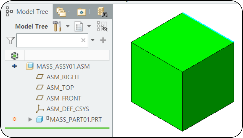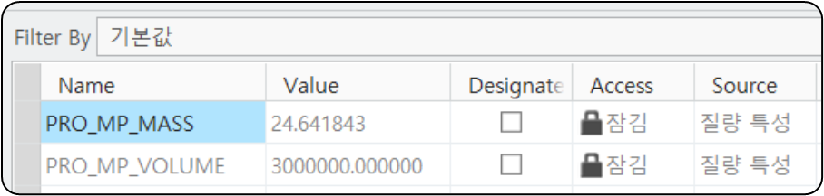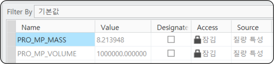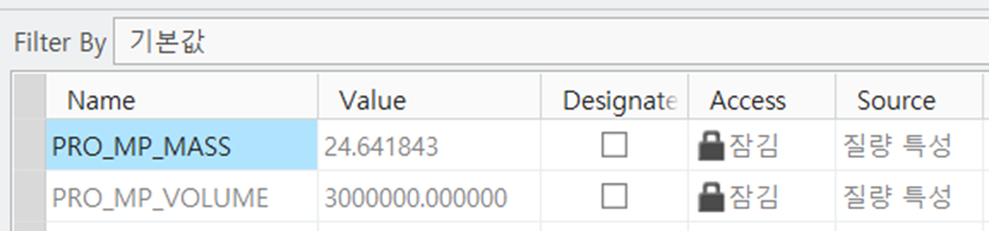 단, config.pro의 "mass_property_calculate" 옵션이 "automatic"으로 설정되어야, 활용이 가능 합니다.