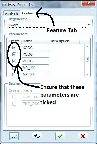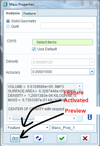 설계에 있어서 무게 중심은 매우 중요 합니다. Analysis --> mass properties 버튼을 클릭 합니다. 분석 Feature를 생성 합니다. Feature 탭을 선택 할수 있습니다. 무게 중심 위치는 선택한 좌표계 거리와 측정한 값 입니다.