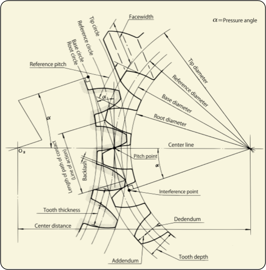 2) 압력각은 보통 20˚입니다. 그러나 경우에 따라 14.5˚, 15˚ 또는 17.5˚, 22.5˚ 또는 27˚. 입니다.