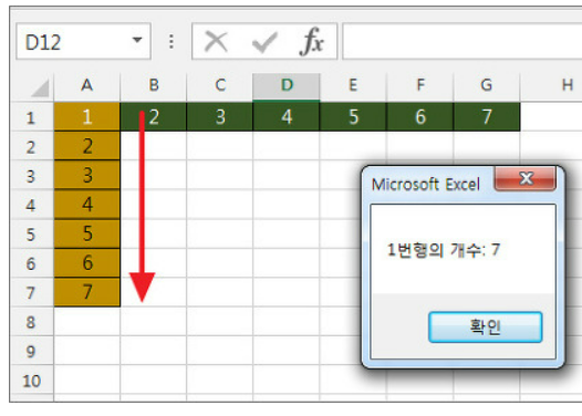 5. 특정 범위의 열 (Column) 개수 구하는 코드 - 매우 자주 사용 하는 코드 입니다 (→)