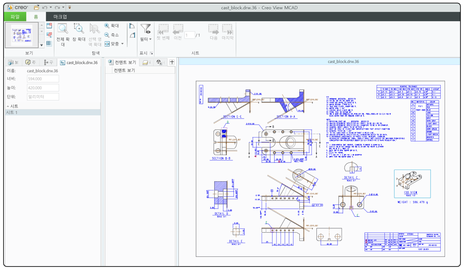 Creo 도면 파일을 직접 Open 할수 있습니다
