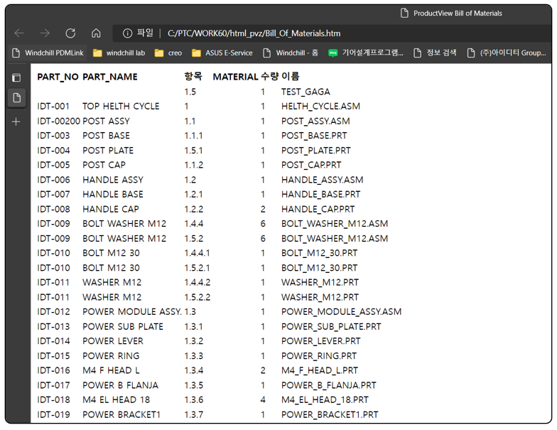 BOM 편집 기능을 활용 하면, Creo를 사용 하지 않는 생산 기술, 구매 부서에서 자신만의 MBOM을 만들수 있습니다.