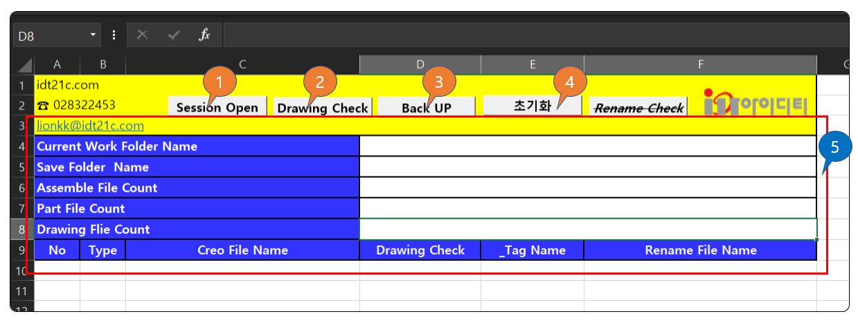 Creo를 시작 하고 작업 폴더를 선택합니다. Creo 어셈블 파일을 Open 합니다. 첨부된 엑셀 파일을 실행 합니다.