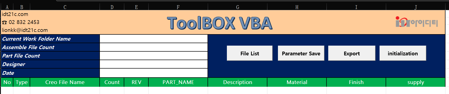 ■ 아래 엑셀 파일 에 모델이 가지고 있는 "Creo Parameter"를 자동으로 표시 합니다.