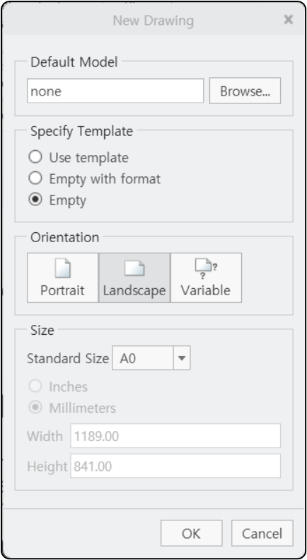 새로운 도면을 만들기 전에 Drawing Template 파일을 선택 할 수 있습니다.
