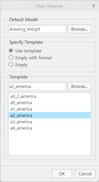 Drawing Template은 도면 환경 설정 및 Format 파일이 필요 합니다.