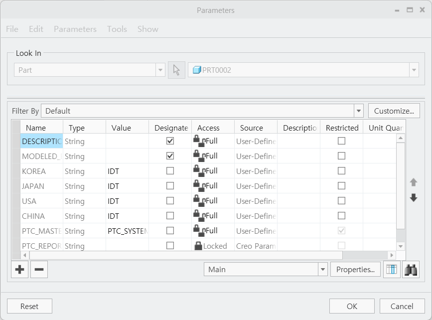 - 동일한 Parameter 이름이 없으면 cell에 있는 Parameter 들을 모델에 생성 합니다. 기본값을 제공 합니다.